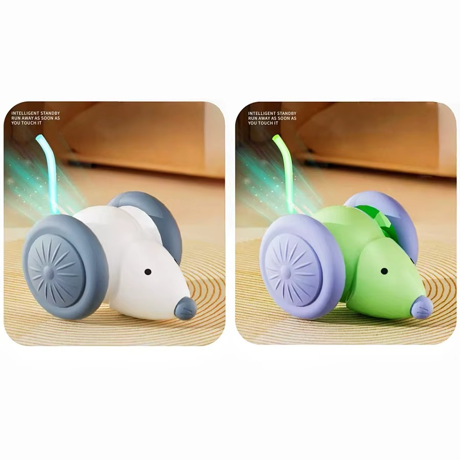 🤸 Mouvement Gyroscopique Dynamique : Les grandes roues assurent une stabilité parfaite. La souris se déplace de manière erratique et fascinante, se redressant toujours automatiquement, ce qui captive l'attention de l'animal pour des heures de jeu actif.