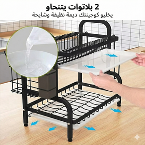Fini les comptoirs encombrés et l'eau stagnante ! Ce séchoir à vaisselle haut de gamme allie un design sophistiqué « LUXURY BLACK » à une fonctionnalité maximale pour transformer votre routine de nettoyage. Avec sa construction à deux étages et son support spécialisé pour couverts et planches à découper, il offre une solution de rangement verticale, libérant ainsi de l'espace précieux sur votre plan de travail.