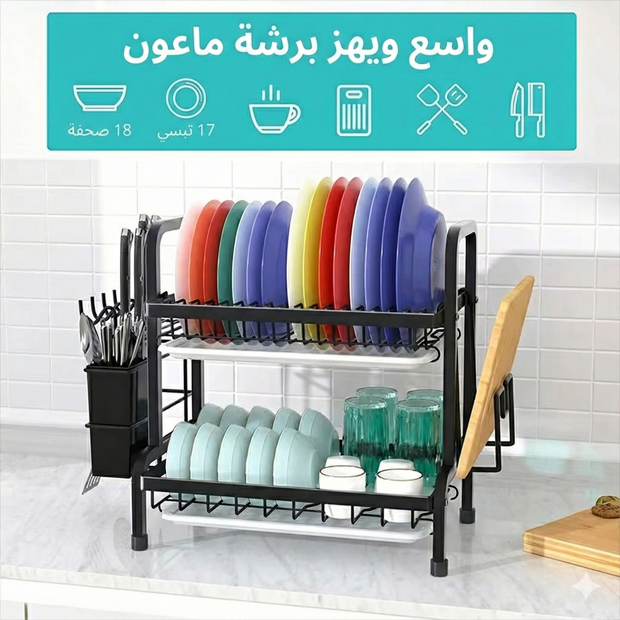 Son fini noir mat et son design épuré s'intègrent parfaitement à toute cuisine moderne, offrant une touche de luxe qui va au-delà du simple accessoire. Le rangement des assiettes, bols et ustensiles devient un jeu d'enfant, tout en assurant un drainage rapide et hygiénique. 🔪