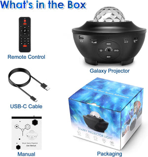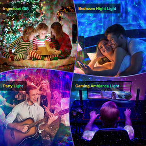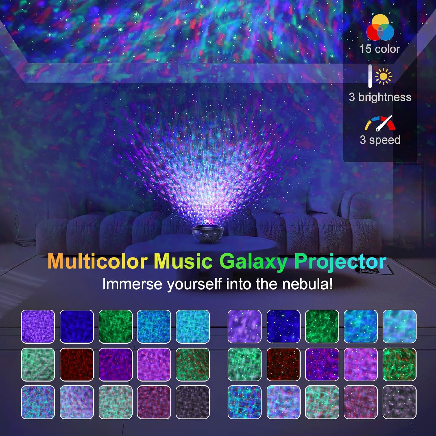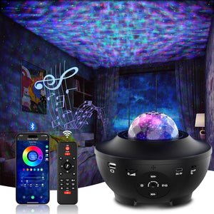 Illuminez vos nuits avec notre projecteur LED galaxie 21 modes ! Ce projecteur de ciel étoilé transforme votre chambre en un univers magique avec des vagues d'océan colorées, un haut-parleur Bluetooth intégré et un contrôle total via télécommande.