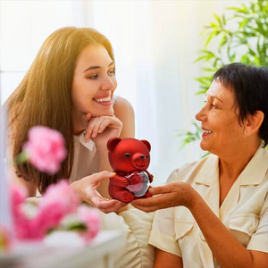 • Design "Ours" Captivant : Un contenant original en forme d'ours avec un fini rouge mat soyeux qui remplace avantageusement les boîtes cadeaux classiques.