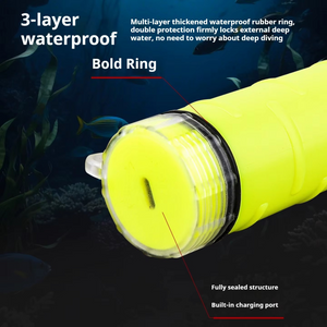 🧤 Interrupteur Facile à Manipuler : Équipée d'un interrupteur à glissière (souvent magnétique) ergonomique, elle est facile à allumer et éteindre d'une seule main, même avec des gants de plongée épais.