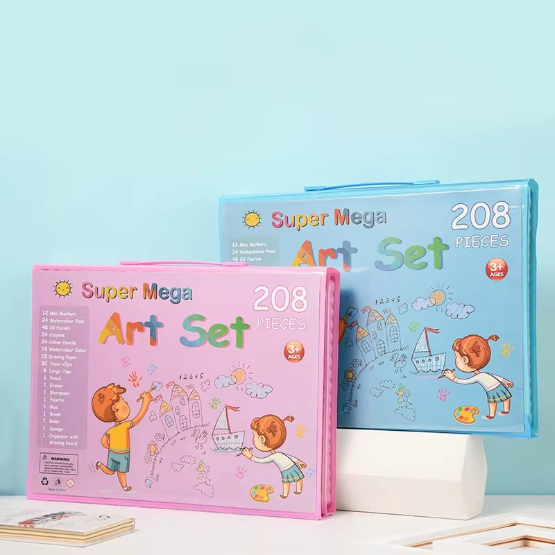 • 🌈 Kit "Super Mega" 208 Pièces : Une collection exhaustive d'outils artistiques incluant des feutres, des crayons de couleur, des pastels à l'huile, des gâteaux d'aquarelle, des pinceaux, des gommes, des taille-crayons et plus encore !