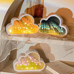 Le Cloud Mirror n'est pas qu'un simple reflet : c'est une fusion envoûtante d'art et de fonctionnalité. Son design unique en forme de nuage abrite un champ de tulipes infinies qui s'illuminent grâce à des LEDs, transformant votre espace en un havre de paix.