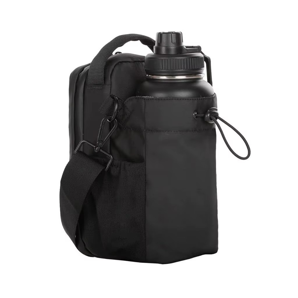 • 🥤 Rangement Grande Capacité : Le compartiment principal accueille facilement les gourdes et shakers de grande taille. Le cordon de serrage sécurise la bouteille pour éviter qu'elle ne bascule.